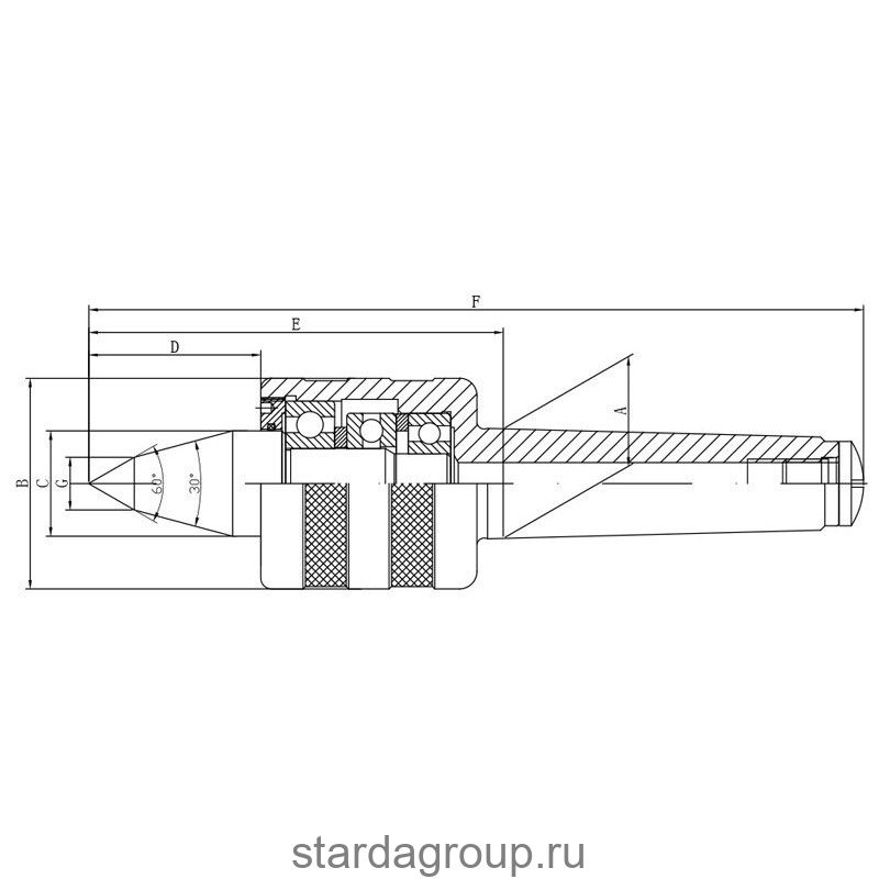 Центр вращающийся DJ-L03002-А-2-5-Н (8814-4 кл 2) SENZANOME с конусом Морзе 5.