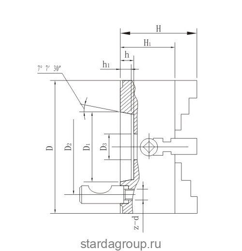 Четырехкулачковые токарные патроны с независимым перемещением кулачков K72-400/D-8