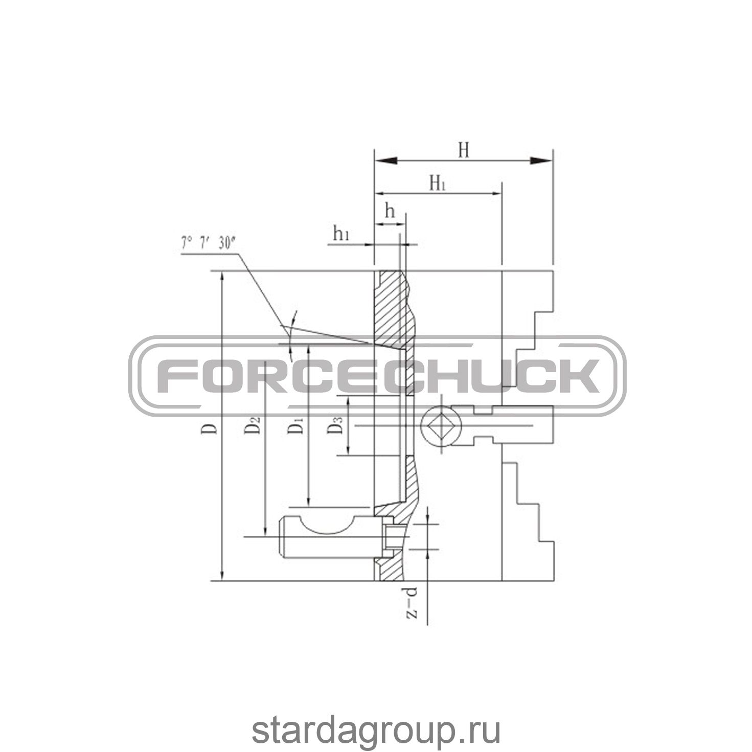 Четырехкулачковый токарный патрон 7103-630.D11 FORCECHUCK с независимым перемещением кулачков