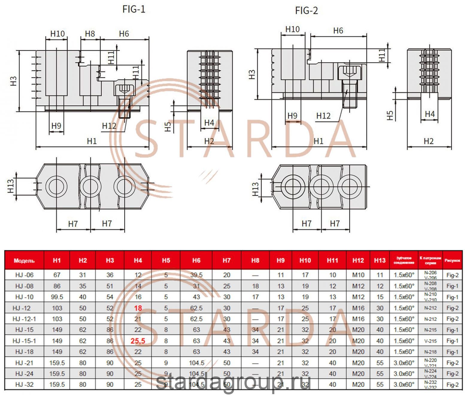 Калёные накладные кулачки HJ-15 STARDA используются в токарных патронах диаметром 15 дюймов (380-405 мм) с метрическим соединением.