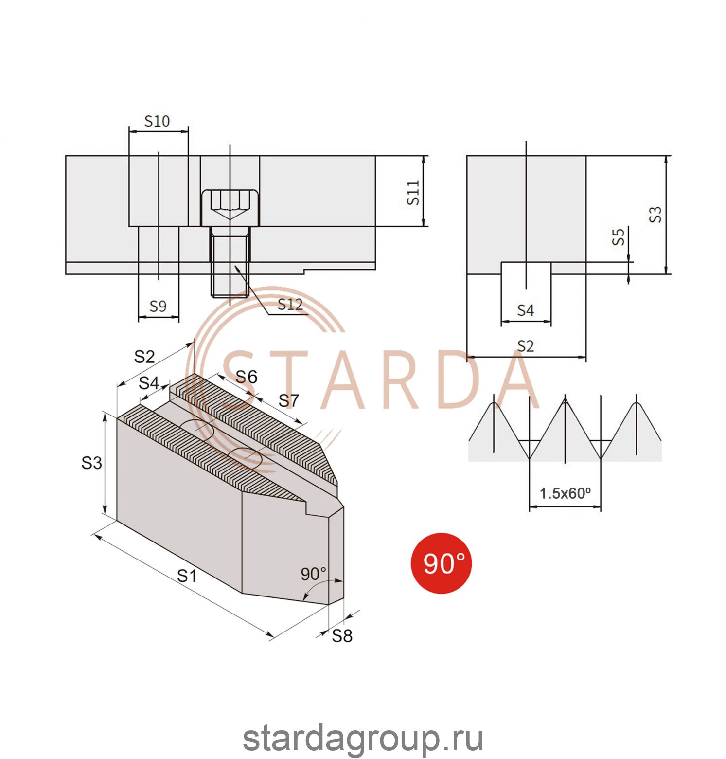Сырые мягкие накладные заостренные кулачки SJ-12-1 (P-90) STARDA используются в токарных патронах диаметром 12 дюймов (300-315 мм).