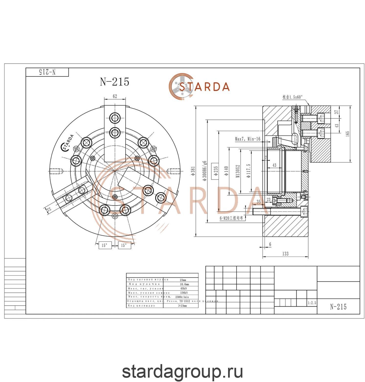 Комплект поставки: Патрон, кулачки сырые SJ-15 STARDA (установлены на патроне), крепления, техническая документация.
