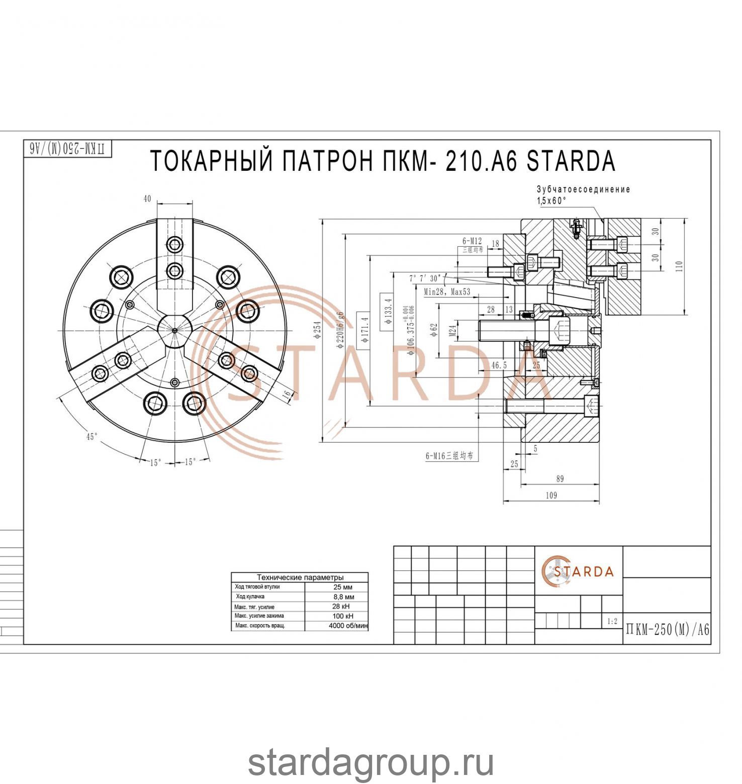 Комплект поставки: Патрон, кулачки сырые SJ-08 STARDA (установлены на патроне), крепления, техническая документация.