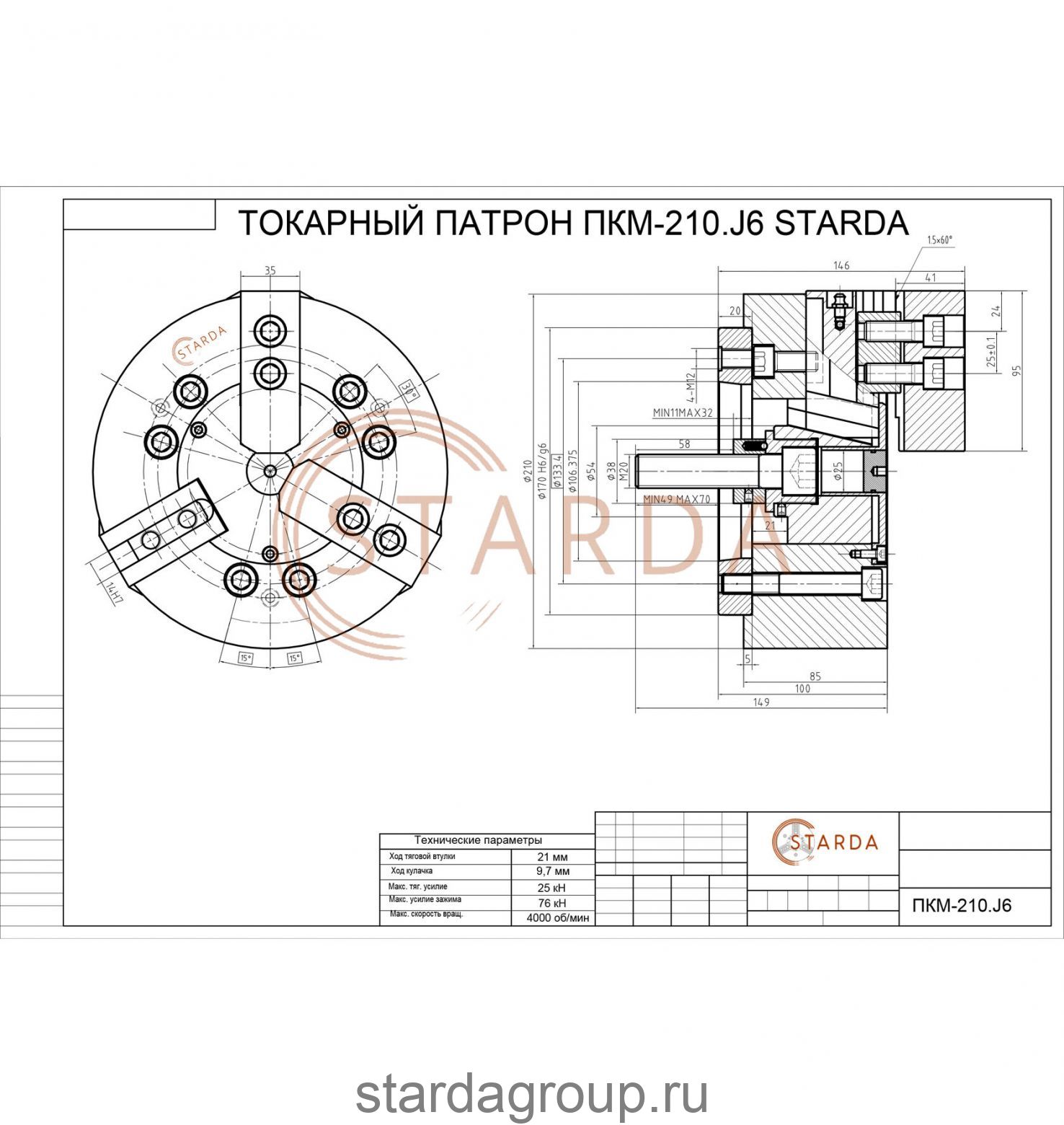 Механизированный токарный патрон ПКМ-250.J6 STARDA