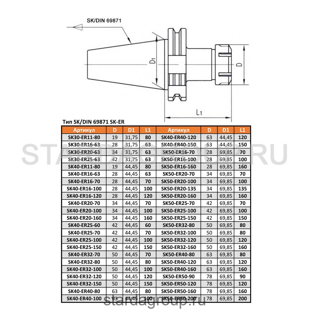 Патрон цанговый SK/DIN 69871 SK40-ER16-100 STARDA DIN6399 (ISO 15498) тип SK/DIN 69871 система ER.