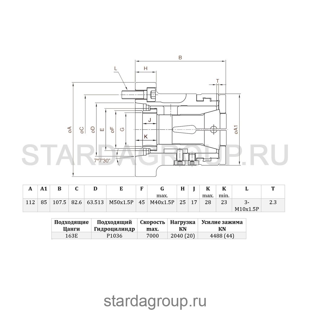 Патрон токарный цанговый гидравлический CK30A4 (CHANDOX) применяется для зажима заготовок, деталей цилиндрической формы с помощью цанг по DIN 6343.