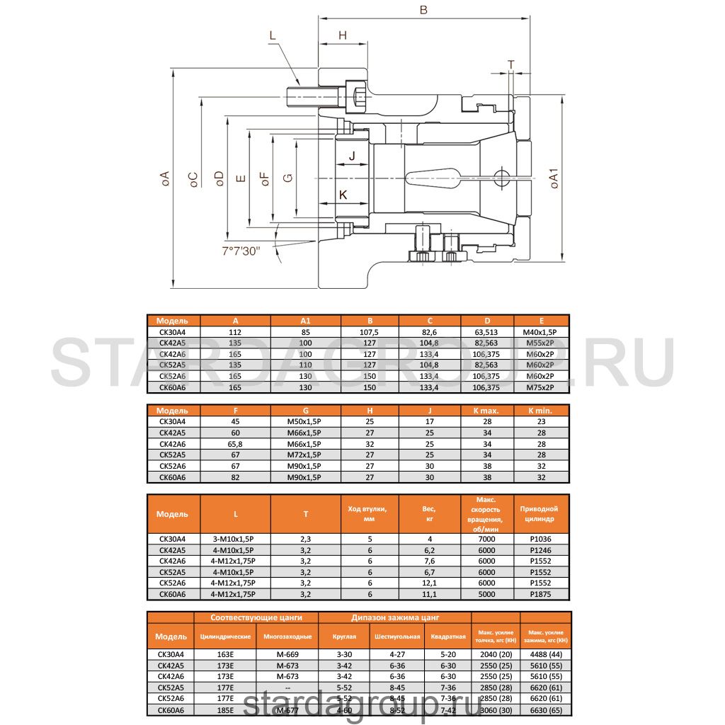 Аналог Патрона токарного CK52A5 для цанг 177E (5-42 мм) AUTOSTRONG