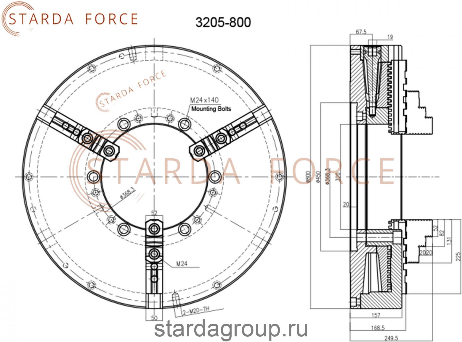 Патрон токарный самоцентрирующийся спиральный 3205-800 STARDA FORCE