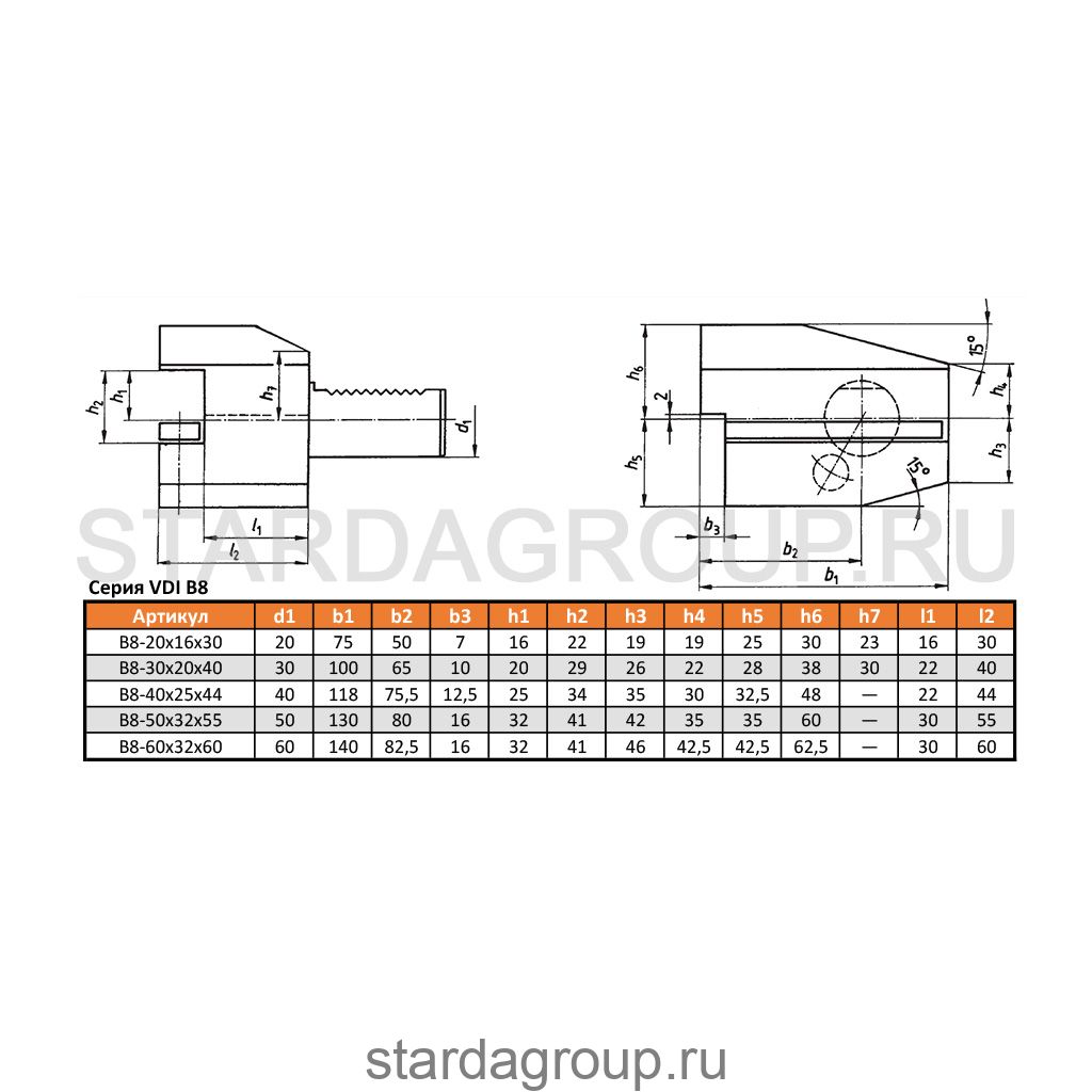 Держатель инструмента VDI B8-50x32x55 STARDA
