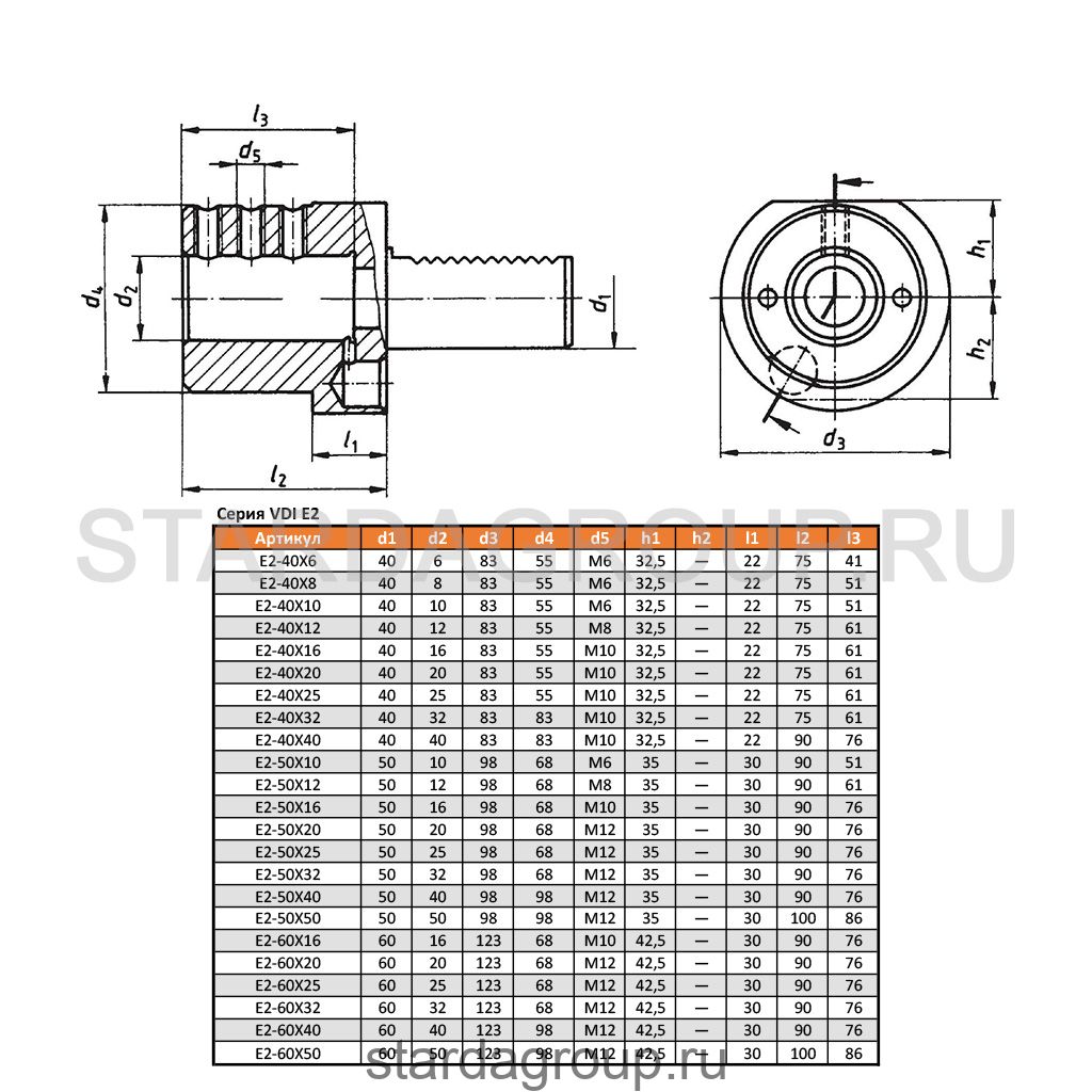 Держатель для расточных резцов (тип E2) с хвостовиком VDI 3425 по DIN 69880 (ГОСТ 24900-81).