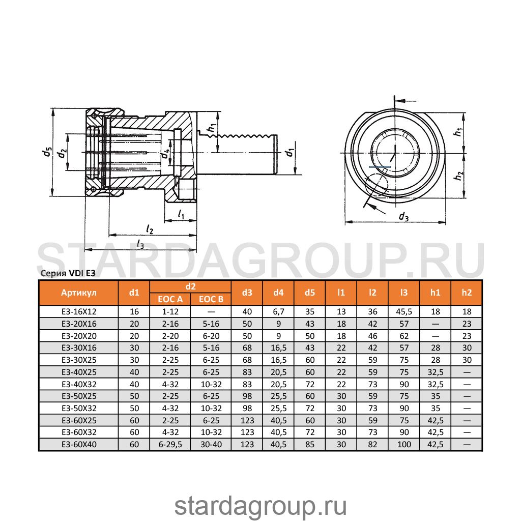 Держатель для цанг EOC (тип E3) с хвостовиком VDI 3425 по DIN 69880 (ГОСТ 24900-81).