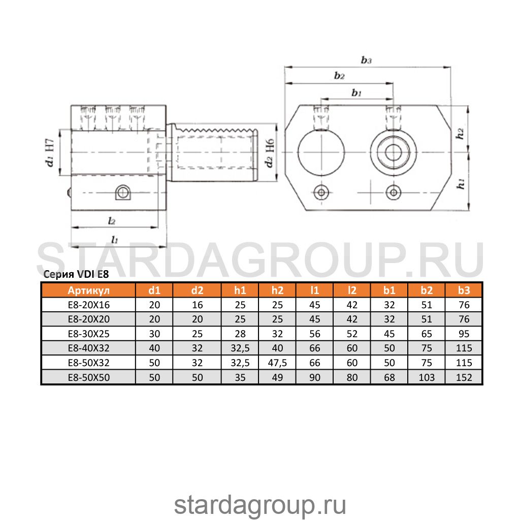 Держатель инструмента для расточных резцов VDI E8-40x32 STARDA