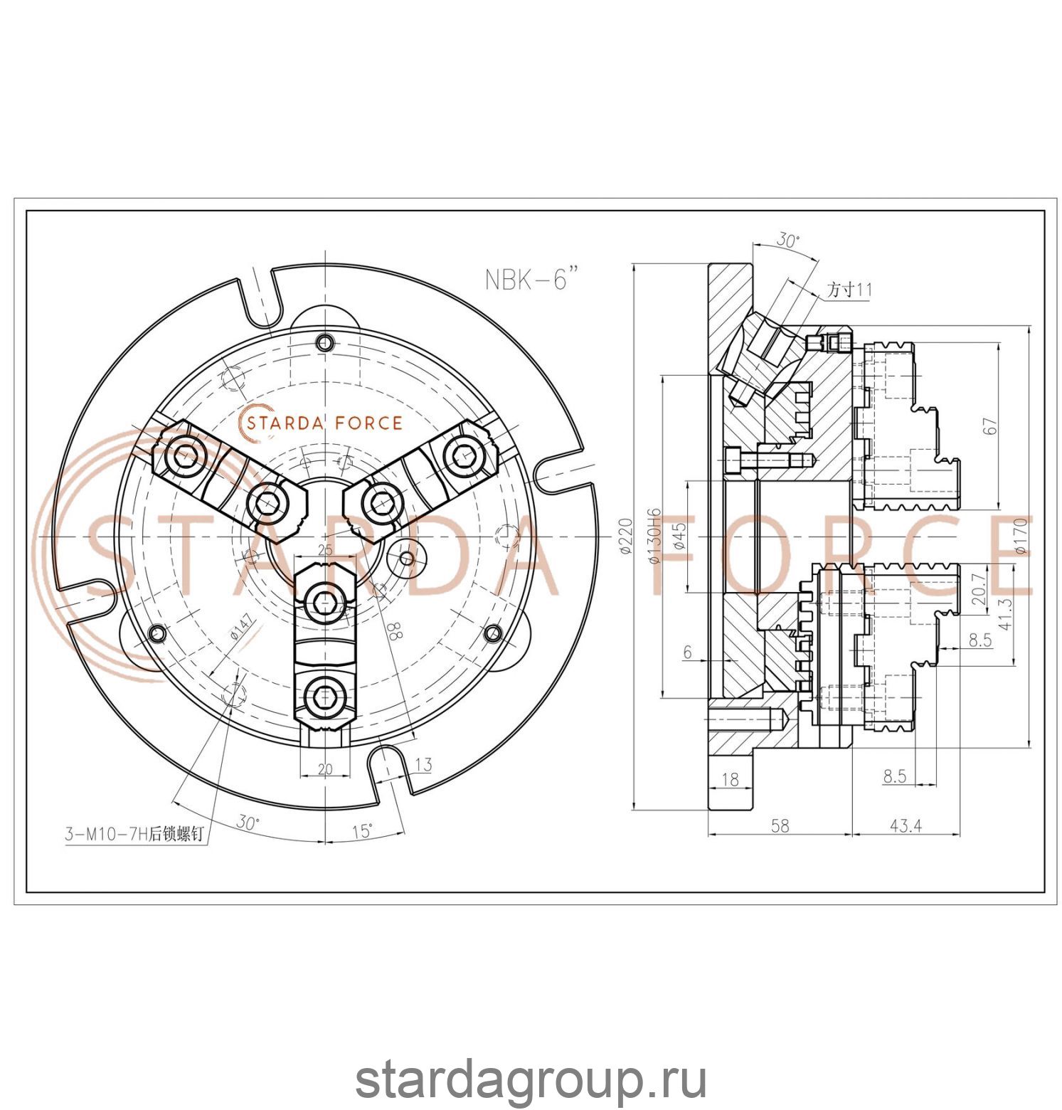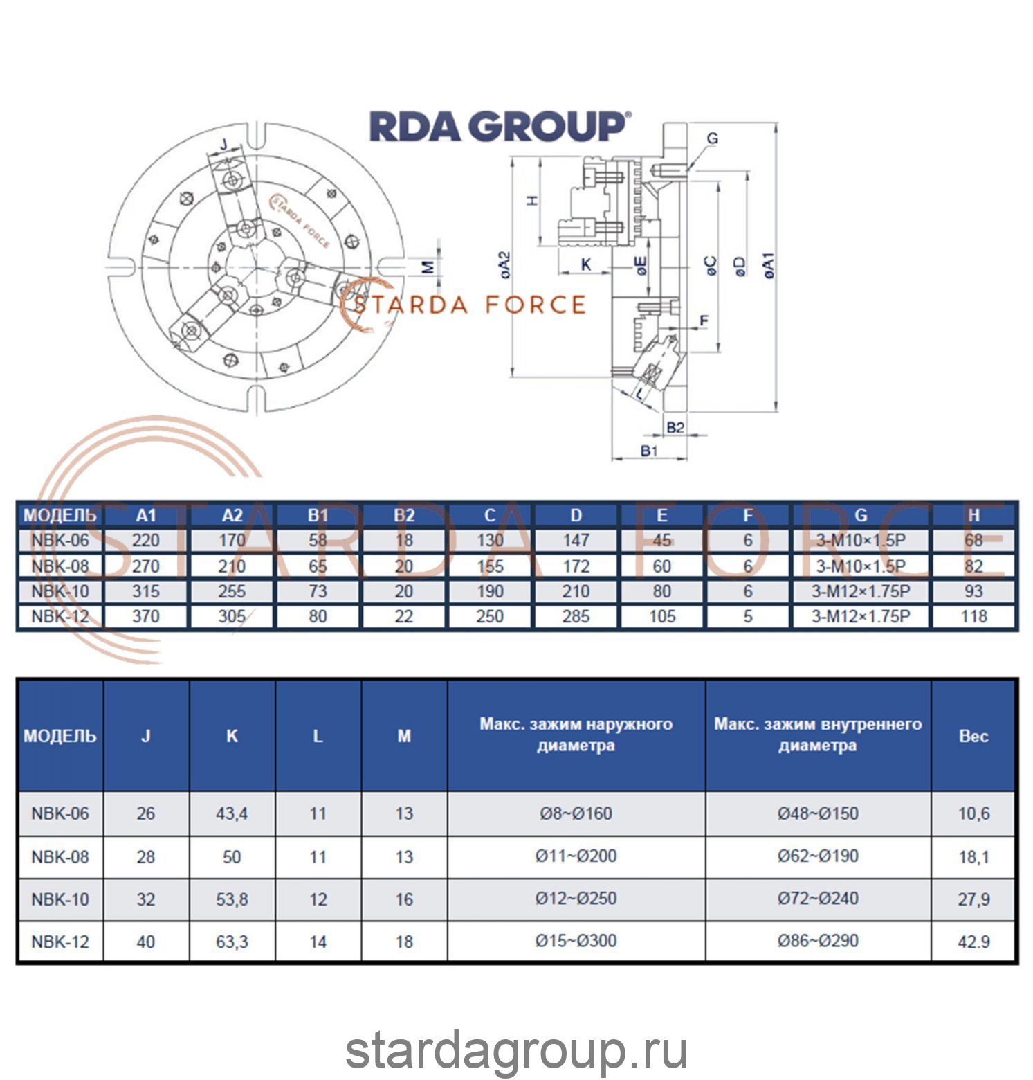 Комплектация токарного патрона SF NBK-06 С ОСНОВАНИЕМ STARDA FORCE: