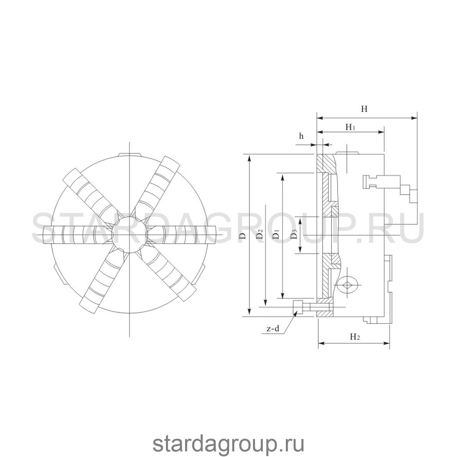 Вид патрона: Самоцентрирующий четырехкулачковый спиральный