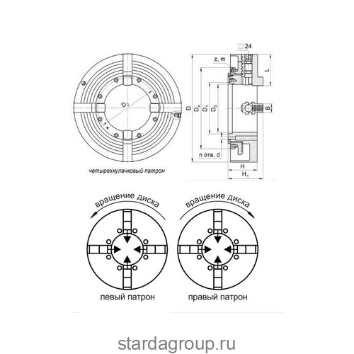 Токарный патрон кулачковый механизированный для обработки труб ППТ 4Н-720.320